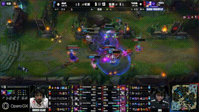 比赛第20分钟,两队爆发厄塔汗团。Kanavi纳亚菲利抢到厄塔汗,TES追击打出0换3。